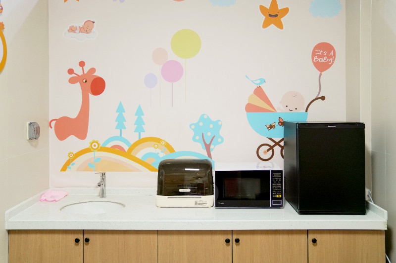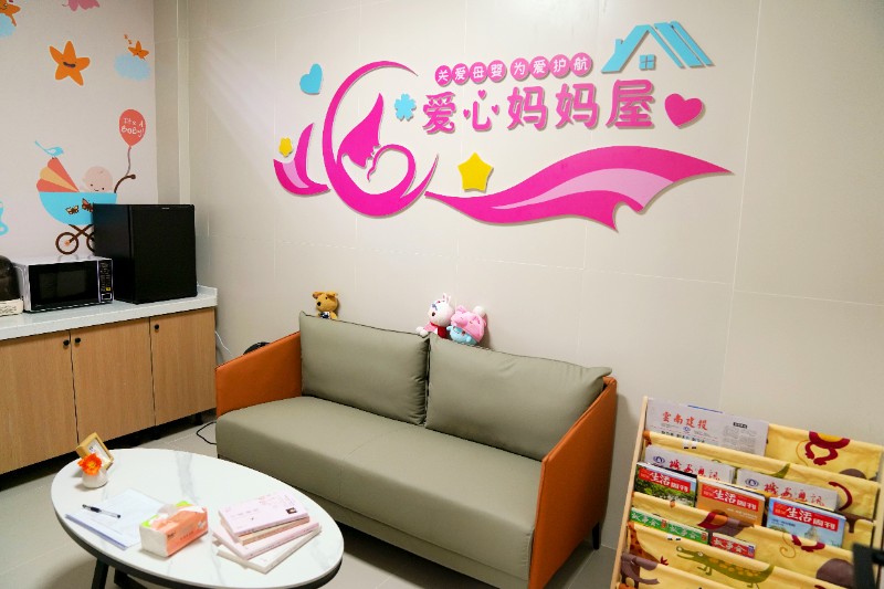 “爱心妈妈屋”内设有沙发、饮水机、洗手台、微波炉、冰箱、桌椅,书架等设备,打造集休息、母乳喂养、健康教育、心理疏导于一体的女职工服务平台。