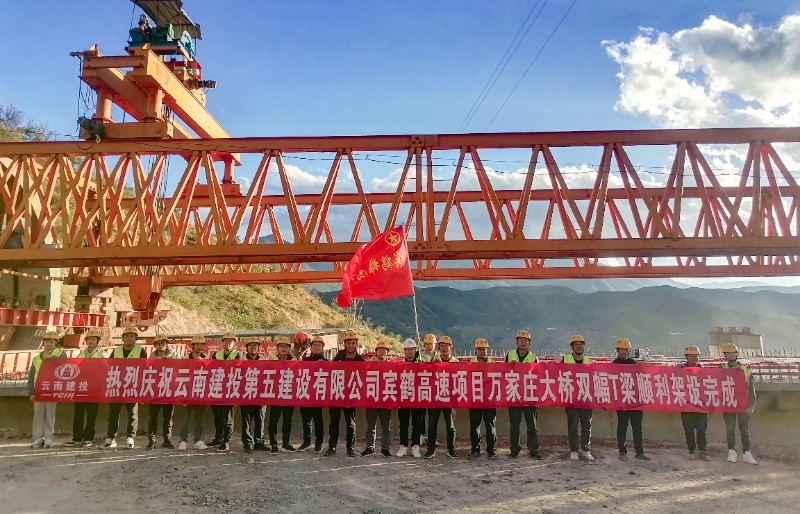 12月12日,由五公司负责施工的宾鹤高速八工区万家庄1号桥顺利完成架设。