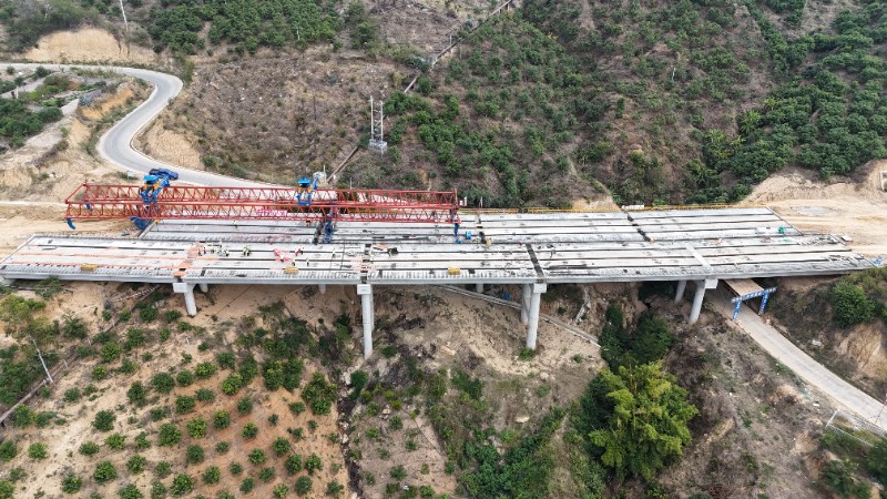 11月30日,永金高速 (戛元段) 曼来二号大桥架设完成。至此,土建十二分部预应力小箱梁安装工作全部完成。