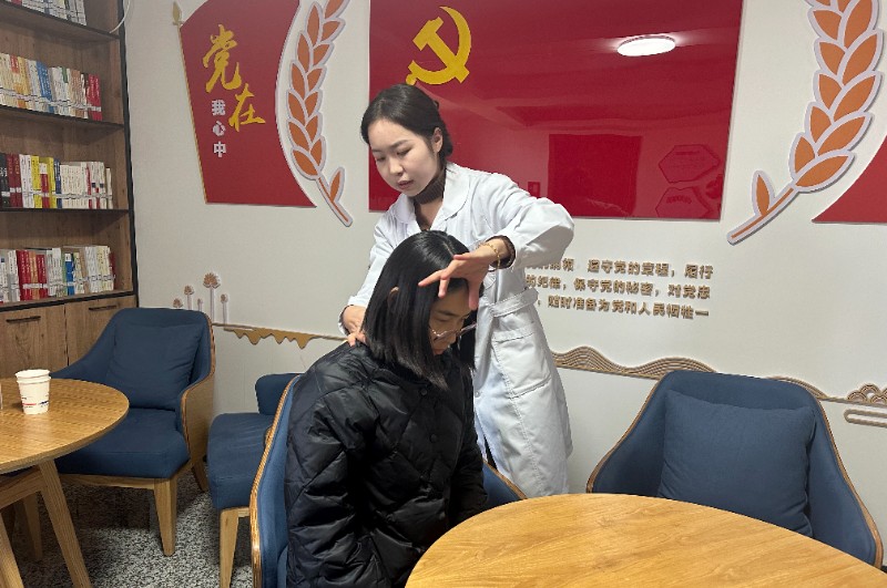 服务期间,中医学研究院医师通过“望、闻、问、切”为职工把脉问诊,结合职工们常有的颈椎腰椎不适等健康问题,为职工们进行手法按摩和中医理疗治疗,围绕员工关心的各类常见疾病、多发疾病相关问题进行健康讲解,并科普了护理保健、食疗药膳、运动锻炼等方面的养生保健知识。