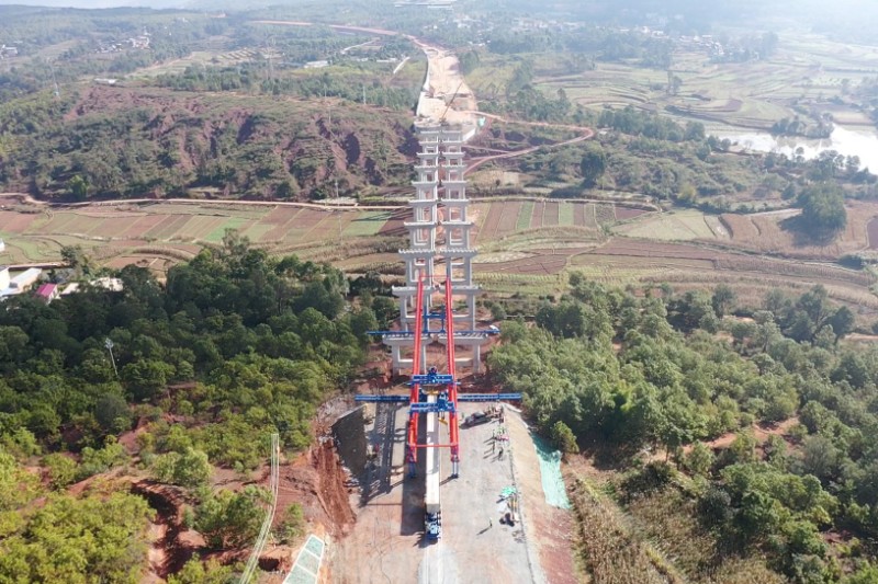 11月23日,楚雄市东南绕城高速全线首片T梁架设完成,桥梁工程施工迈出关键一步。
