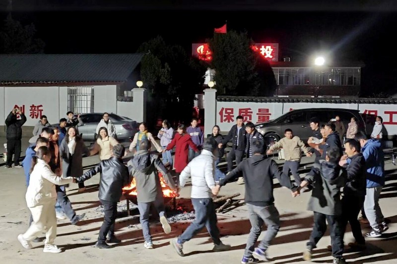 座谈会结束后,项目部广场上燃起熊熊篝火。大家围在一起,伴随着欢快的乐曲尽情起舞。企业文化“快问快答”“传声筒”“占领阵地”等游戏环节,把活动气氛推向高潮。在阵阵欢声笑语中,本次活动圆满结束。