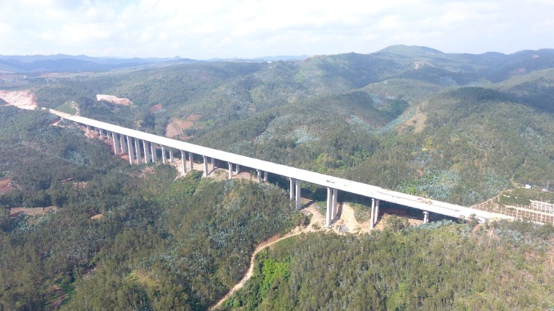 11月14日,弥玉高速公路招北2号大桥双幅顺利贯通。