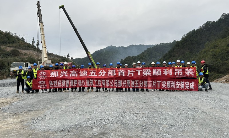 11月14日,试吊、运梁、喂梁、落梁......那兴五分部项目南屏水头中桥第一片T梁稳稳落下,项目首片T成功架设完成。