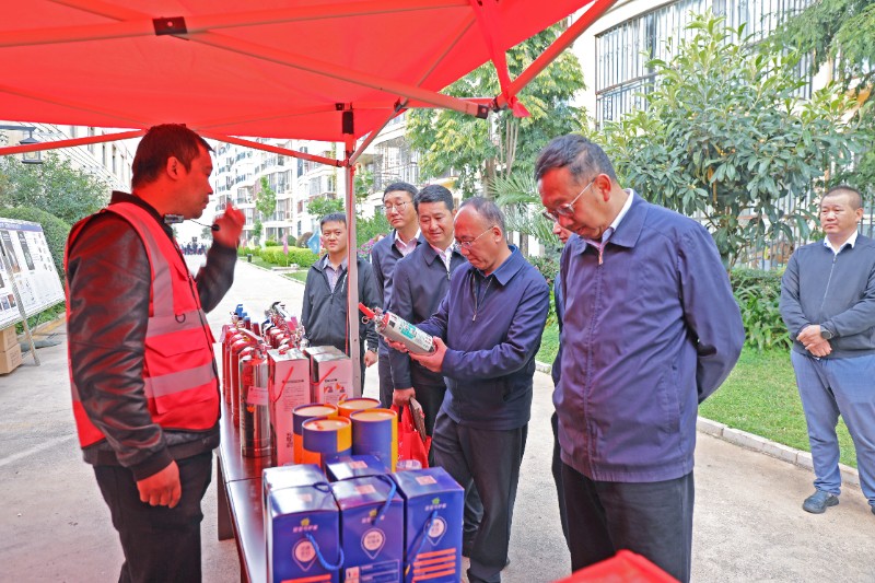 参会人员观看火灾警示教育片,学习官渡区消防救援队讲解的消防安全知识和器材,积极参与消防知识竞答。