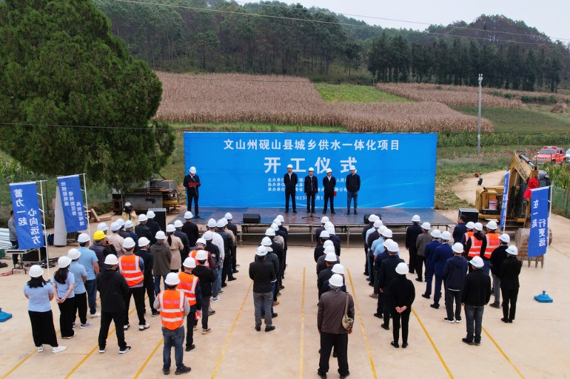 11月1日,由集团投资建设的文山州砚山县城乡供水一体化项目在砚山县盘龙乡翁达村委会火头大地村举行开工仪式。