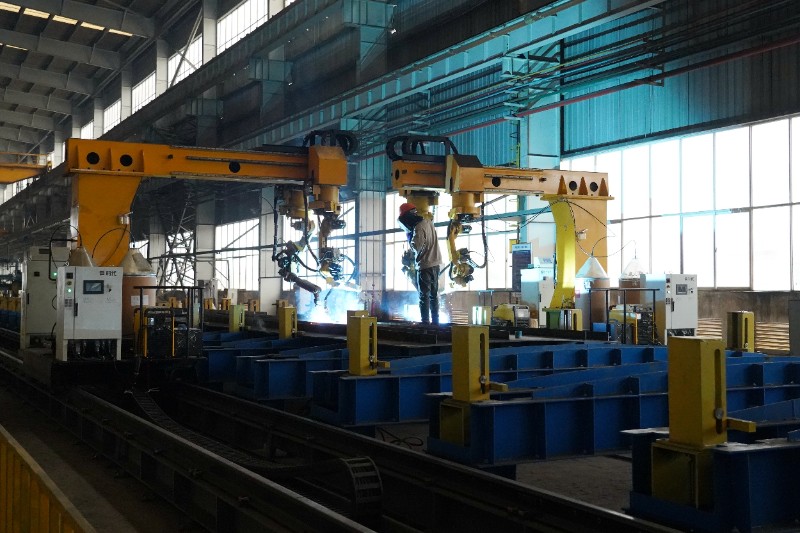 车间飞速运转,下料接板效率提高了近1.5倍,小料配送如同AI一样精准,拼装效率提高1.5至2倍,成品焊接效率提高2倍多,构件流转顺畅,当天转出的构件当天喷涂完毕,构件打包发货最多1天达34车……