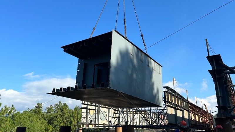 10月16日,钢构公司承建的古宁高速公路上跨丽香铁路工程黄山哨大桥钢箱梁制安工程项目顺利完成首吊,正式进入钢箱梁拼接阶段。