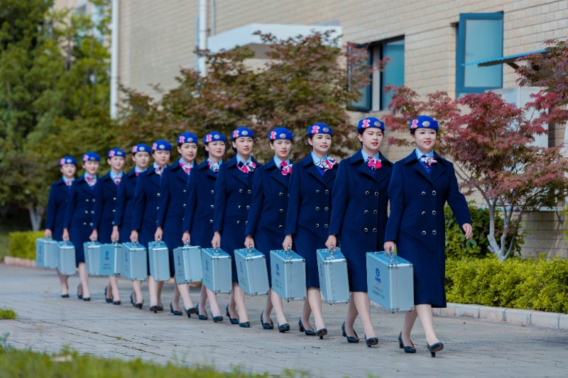 在小小的窗口,每天重复成千上万次的动作,如何“坚持”是关键。坐姿要端正,站姿要立正,微笑要标准,一个班下来,面部肌肉会感到僵硬,肩膀、手臂、腰也都是酸疼的。为此,“阿诗玛”代表队从调整心态、政策学习出发,编制了一套“大法宝”,便是“岗前教育七步曲”。