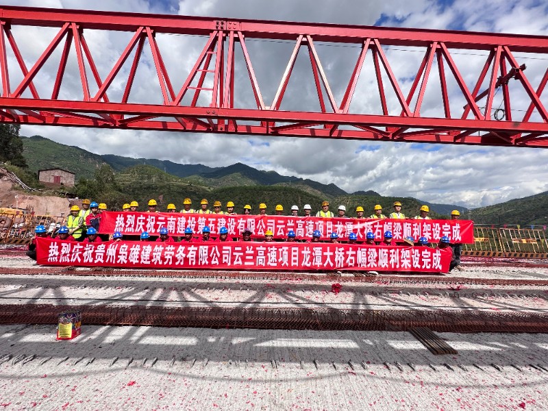 10月3日,随着大桥右幅最后一片T梁平稳就位,云兰高速龙潭大桥右幅80片T梁全部架设完成,实现贯通。
