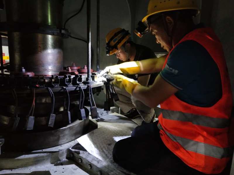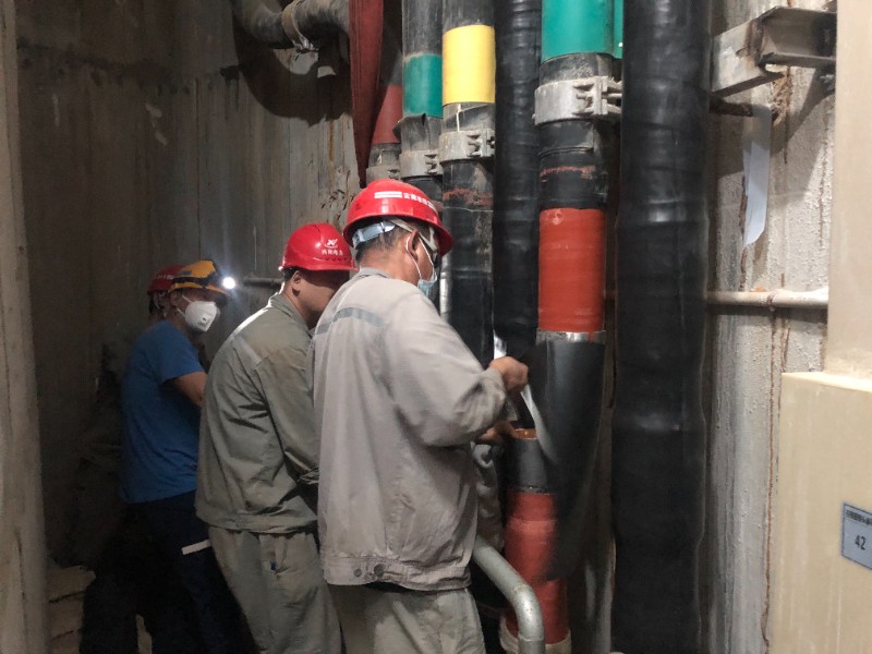 干河泵站管母作为泵组运行的“大动脉”,布置于渗水现象常发的竖井内,极易因绝缘降低引发短路。针对这一安全隐患,世界杯足球比分人员不惧施工工艺要求高、环境恶劣等影响,连续鏖战30天,终于完成了对管母金属屏蔽层的修复处理,使管母各项试验数据均能满足运行规范要求。