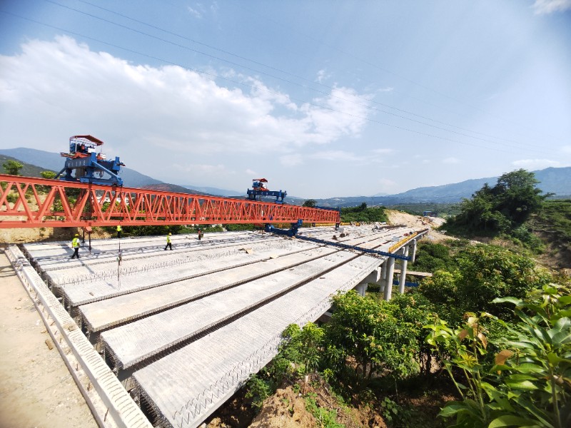 9月3日,永金高速(戛元段)十分部曼烈大桥箱梁架设完成,进入桥面施工阶段。