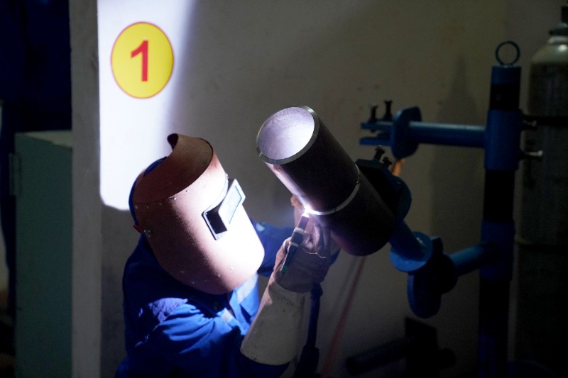实操比赛现场弧光四溢、焊花飞舞,参赛选手们头戴防护罩,手持焊枪,凭着丰富的专业知识和娴熟的业务技能,熟练、准确地划线、切割、拼装、焊接,展现出高超技艺。理论知识考试现场规范有序,参赛选手们严格遵守考试有关规定,认真独立完成答卷,考场氛围严肃紧张。