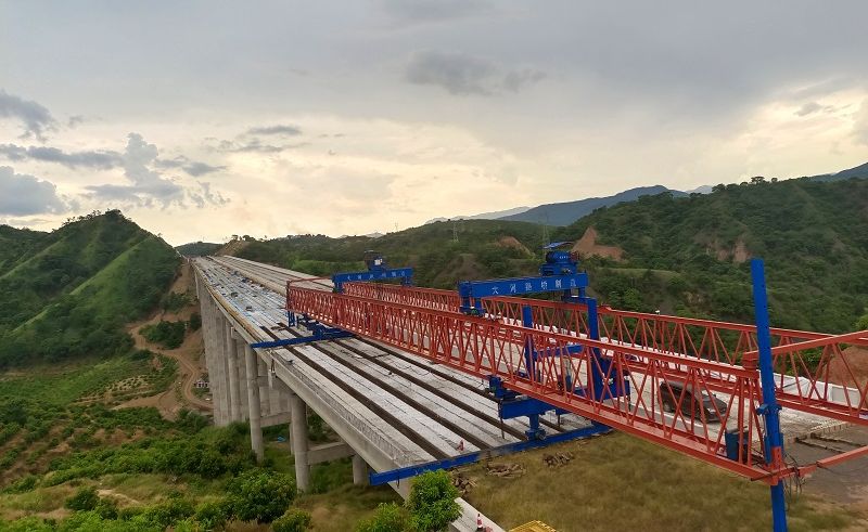 下奔山箐2号桥桥长529.58米,桥墩及基础为桩基础、圆柱墩及空心薄壁墩,桥台为桩基础、柱式台,共13跨。架梁过程先后克服了地形复杂、施工技术难度大、汛期、高温等困难。