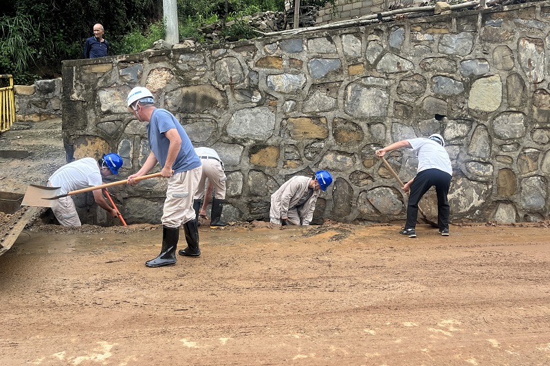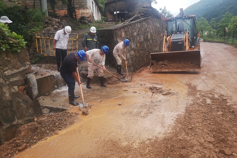待天亮雨停,根据优先保障交通,同步疏通排水系统的抢险原则,牛栏江公司迅速组织人员,由党员突击队冲锋在前,枢纽管理部全体员工及保安公司、零星用工单位人员共同上阵,对遭受地震降雨破坏的道路和排水设施进行抢修。根据分工,生产一线的党员们身先士卒,有的配合挖机快速清理路面;有的顶着洪水深入涵洞清理堵塞物,增加排水速度;有的迅速抢修损坏水管,保证鱼类增殖站生产及职工生活用水用电正常。