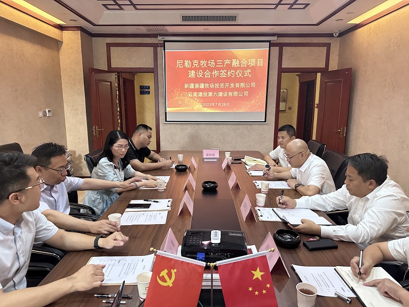 7月28日上午,由集团新疆维吾尔自治区总部牵头,六公司与新疆援疆牧场投资开发有限公司举行尼勒克牧场三产融合项目建设合作签约仪式。