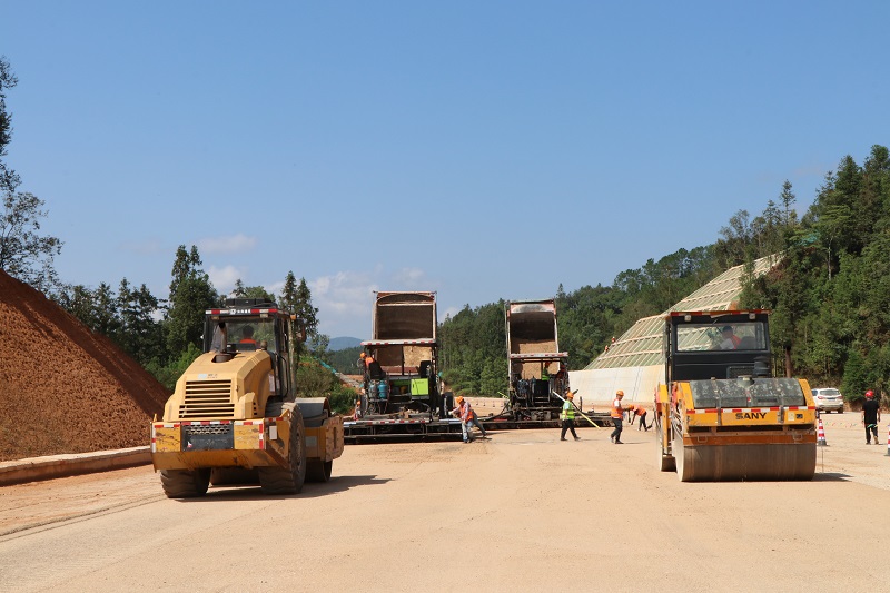 6月26日,那兴高速主线路面工程级配碎石基层试验段铺筑完成,项目转入路面工程施工阶段。