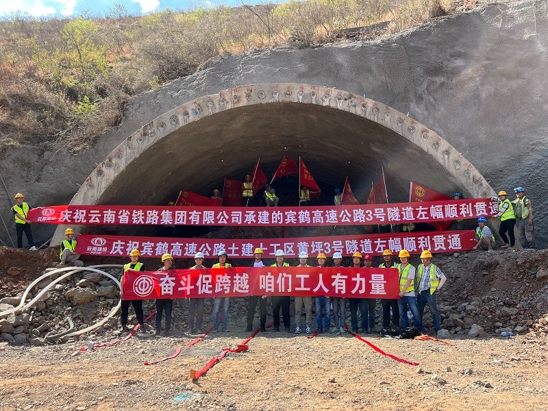 5月31日,宾鹤高速黄坪3号隧道左幅贯通。黄坪3号隧道为分离式隧道,左幅全长350米,最小埋深23米,最大埋深115.02米,隧道区海拔高程介于1790-1906米之间,相对高差113米,隧道进出口段地形较为陡峭,施工过程中地质变化较大。