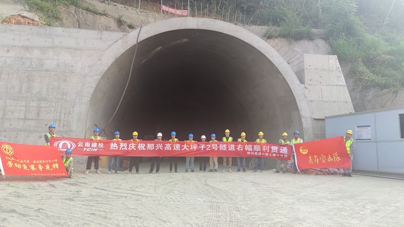 5月23日,那兴高速土建十分部大坪子2号隧道右幅贯通。