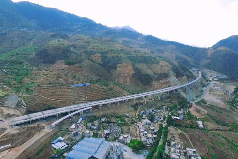 天井村特大桥右幅高边坡地势陡峭,为典型的深谷沿河地貌,左幅桥梁毗邻二级路,为临沧与保山交通的主干道,人车通行量大,施工范围内地形复杂,具有施工区域地势险峻、技术难度大、安全风险高等特点。项目科学组织、系统安排,合力制定科学合理的实施方案,建设过程中实行安全、质量、技术等全过程监督,动态优化施工组织,对施工现场作业人员进行每日班前教育、技术交底,确保各项作业按照施工方案顺利进行,在保证安全、质量、环水保的前提下完成了大桥左幅T梁架设。