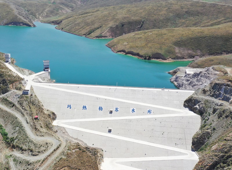 玛热勒苏水库是一座以工业、城镇生活供水和灌溉为主,兼顾防洪、发电等综合利用任务的水利枢纽工程,水库总库容为3254万立方米,工程由大坝、放水隧洞、导流冲砂隧洞、溢洪洞四部分组成,大坝为混凝土面板砂砾石坝,坝顶宽8米、全长250米,最大坝高为79米。
