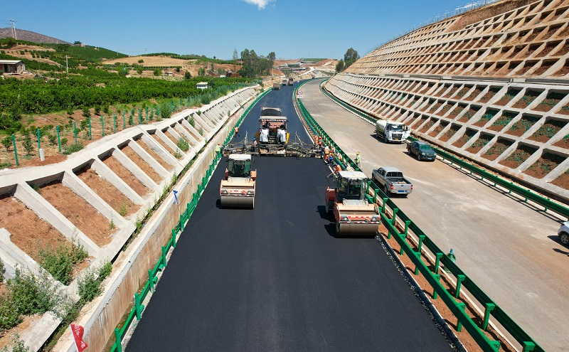 5月7日,宾鹤高速宾川段沥青上面层AC-13试验段顺利完成铺筑。
