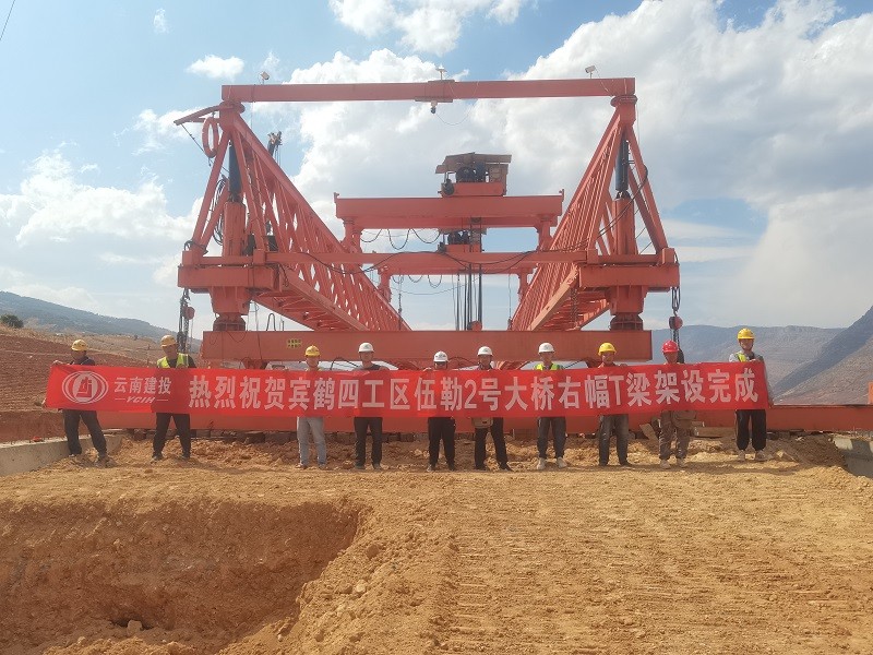 4月24日,总承包公司施工的宾鹤高速土建四工区伍勒2号大桥右幅T梁架设完成,实现贯通。