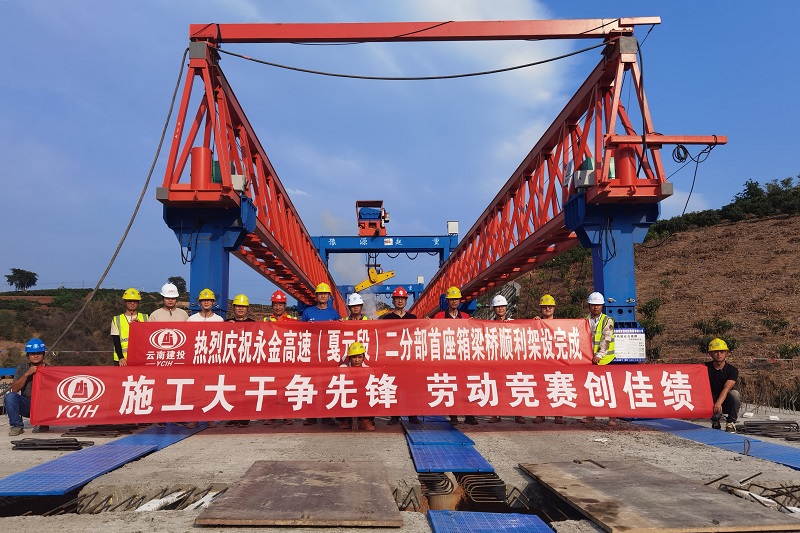 4月22日,永金高速(戛元段)二分部首座箱梁桥发启2号桥顺利架设完成。