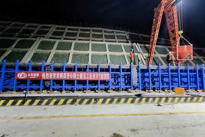 4月16日,随着最后一方混凝土注入模板,宾鹤高速土建五工区首片预制T梁顺利浇筑完成。