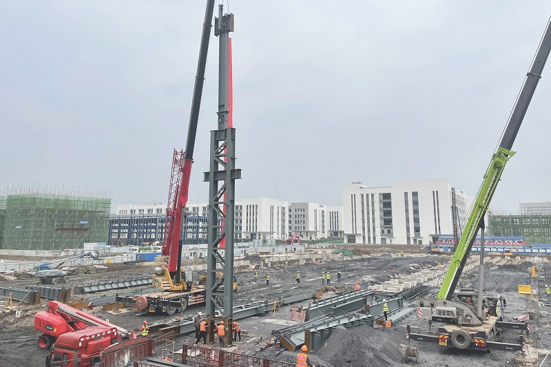 4月14日,钢构公司承建的湖南运达风电有限公司永州基地一期施工总承包项目联合厂房首根钢柱吊装到位,项目主体施工正式拉开序幕。