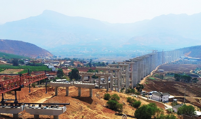 4月10日,土建十工区首片T梁顺利架设完成。本次梁板架设为三家村中桥右幅3-3号30米T梁。三家村中桥全长189.16米(按单幅计),共3跨,设计30米T梁共30片。