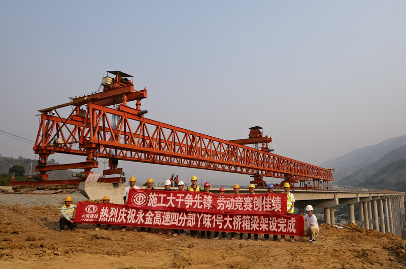 4月10日,随着最后一片箱梁安装就位,永金高速丫味1号大桥顺利完成箱梁架设,为其它施工点的材料设备运输打通了更便捷高效的通道。