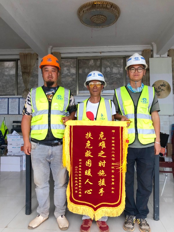近日,四川攀枝花钢铁集团职工向二公司第十七直管部程海项目周跃全、李章勇、和东赠予“危难之时施援手 扶危助困暖人心”锦旗和感谢信,对他们热心帮助自己和妻子脱困表示衷心感谢。