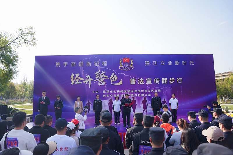 情暖三月,万物生辉。3月31日上午,由西南交建公司联合昆明市公安局国家经济技术开发区分局共同举办的“携手奋进新征程 建功立业新时代 经开警色·普法宣传健步行活动”在经开区廉政文化公园广场举行。共26支代表队200余人参加比赛。