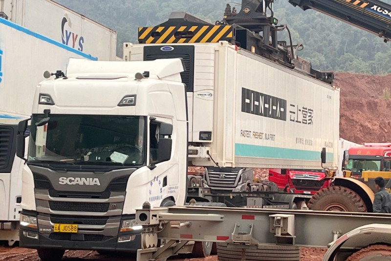 此次运输的毛豆从老挝沙耶武里省孟平县采收加工地预冷打包、装车启运,境外段由物流公司斯堪尼亚冷链车运输至磨丁口岸lCD货场报关。同期,国内段冷链车携货抵达西双版纳磨憨镇准备接驳,经过报关清关、吊柜换挂中转等环节,最终运抵目的地武汉完成交货。