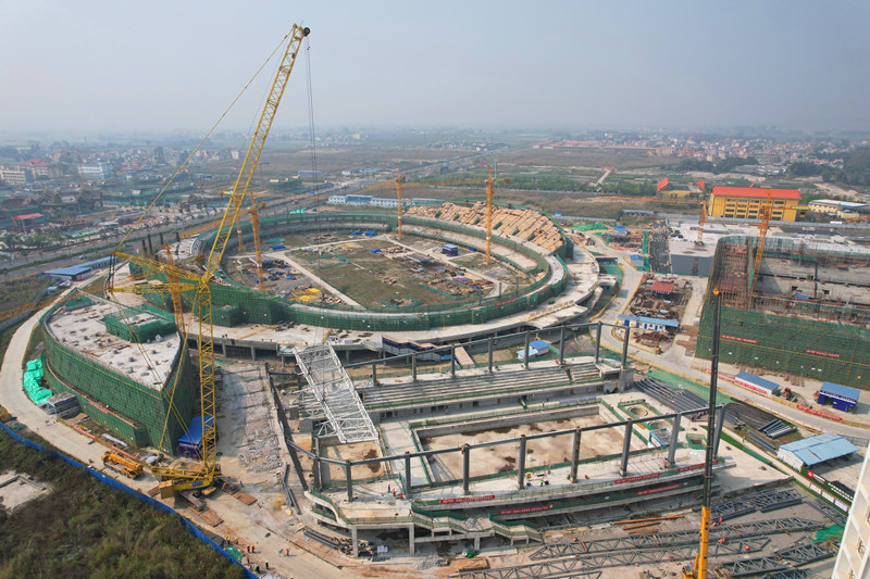 美加墨世界杯足球比分国际文体中心建设项目位于美加墨世界杯足球比分市西南部,主要包括体育场、游泳馆、综合体育馆三个单体钢结构专业建筑,游泳馆建筑总面积10867.98平方米,主体结构为框架结构,屋面钢结构管桁架支承于下部钢骨柱顶,屋面建筑总高度为23.1米,西北端高,东南端低,钢骨柱钢结构总量约470吨,桁架钢结构总量约450吨,此次吊装的第一榀管桁架重48吨,空间结构跨度42米。