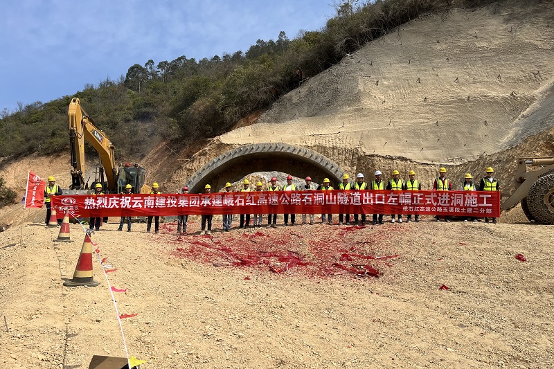 3月17日,峨石红高速(玉溪段)控制性工程石洞山隧道左幅出口端顺利进洞施工,正式进入双向掘进阶段。
