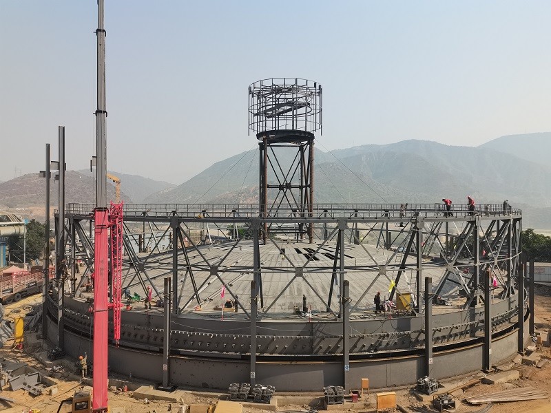 该新型煤气柜也称为圆筒形稀油密封新型(POC型)高炉煤气柜,柜体部分钢结构近3000吨,配重2000余吨,高100余米。其配套设施所涉及的工艺设备、区域防雷接地系统、消防系统、通风、空调系统、给排水系统、项目配套的热工监测等,均在施工范围内。