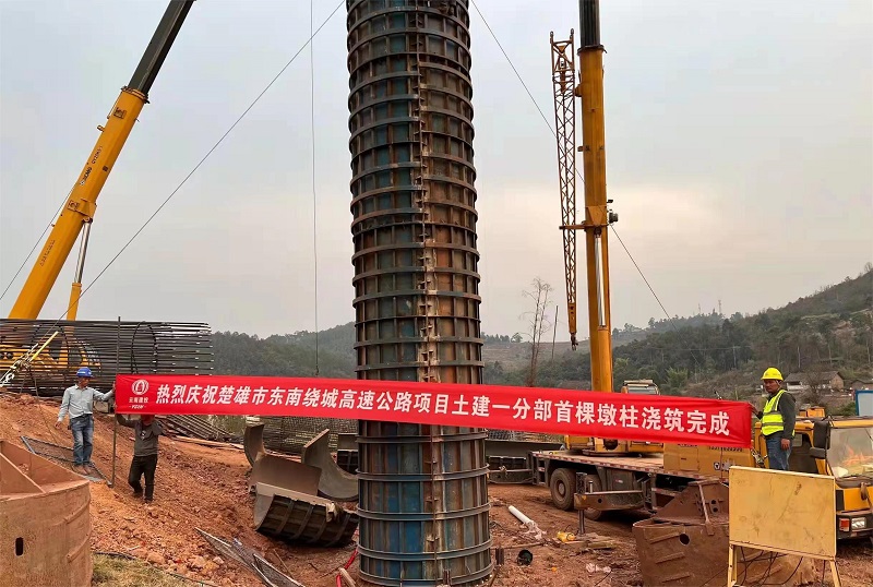 3月15日下午,世界杯足球平台市东南绕城高速公路项目土建一分部下土坡大桥首棵墩柱顺利浇筑完成。