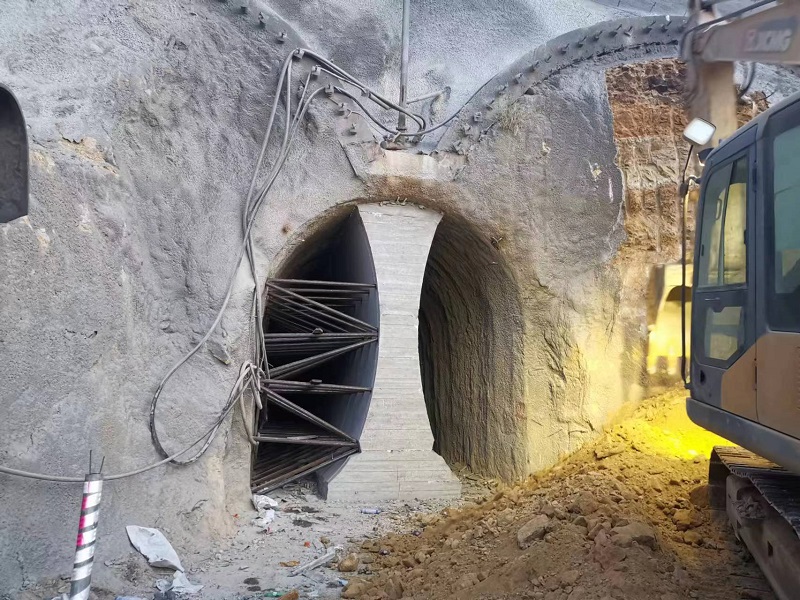 曼烈梁子隧道出口位于元江县,进口位于新平县,为连拱隧道,里程桩号为K78+865-K79+330,单幅长465米,最大埋深60.89米,最小埋深9.55米,主洞施工采用三台阶预留核心土开挖方法,中导洞采用两台阶开挖法,施作中隔墙。曼烈梁子隧道中隔墙的浇筑完成标志着连供隧道主洞施工的安全和稳定性得到了更大保障,为后续主洞的施工奠定了基础。