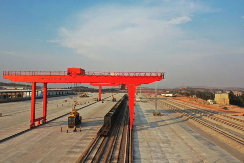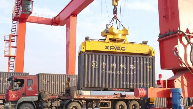 一大早,装卸工人、龙门吊、物流队便已整装待发。随着调度室一声:“祥云西站,专用线货站场各项参数已调度完毕,可以发车。”列车缓慢驶入专用线货站场,经过掉头,变道后,准确停在了龙门吊下方。指挥员镇定自若,龙门吊挥舞着它的“巨爪”,精准对入集装箱,缆绳收缩,集装箱被缓缓吊起,放入货运车。