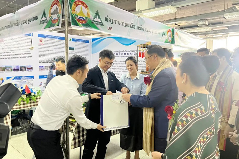 开幕仪式上,宋赛·西潘敦一行来到云南驻万象代表处展区调研,代表处负责人为宋赛简要介绍了代表处近期工作情况,重点推荐了云南绿色食品,汇报了云南企业在世界杯足球比分预测投资建设的重点项目和企业情况,介绍了云南省2023年对外经贸政策。