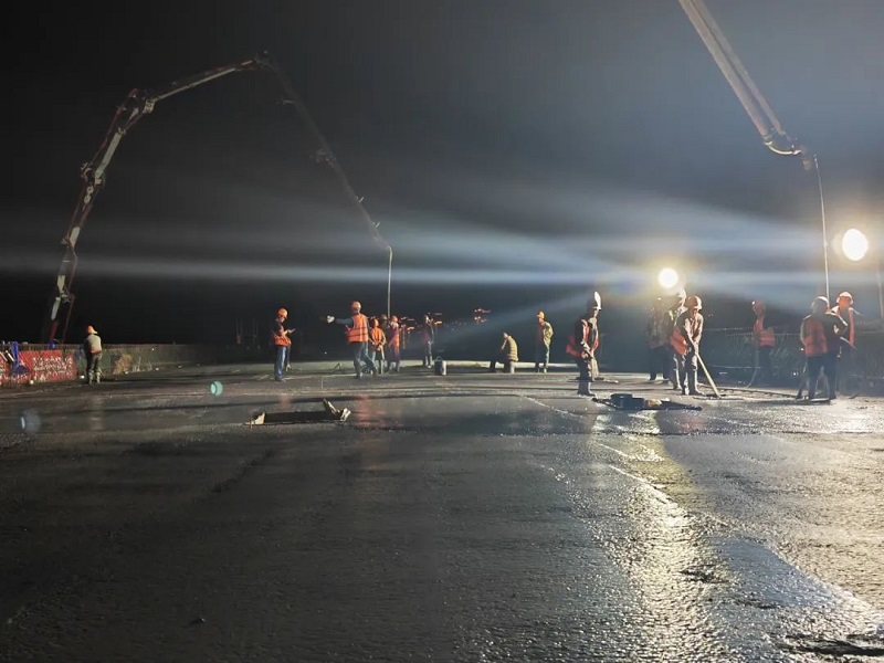 ▲桥面浇筑