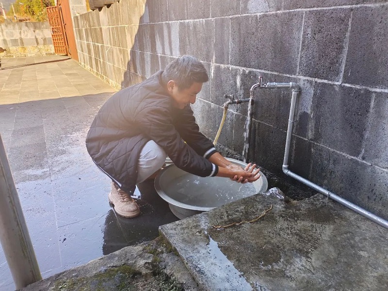 现场施工时,开挖管槽、横穿道路、深入排水沟,每家每户的管线布置都要结合实际调整管道走向及水表和水龙头安装位置,贴心满足群众用水需求。通过安装净化消毒设备和物联网水表,在保障群众用水安全的同时,方便群众在线报修、缴纳水费。班老乡世界杯官网合作平台也是全省农村供水保障三年专项行动中第一个完成水厂、管网、水源试通水的世界杯官网合作平台。