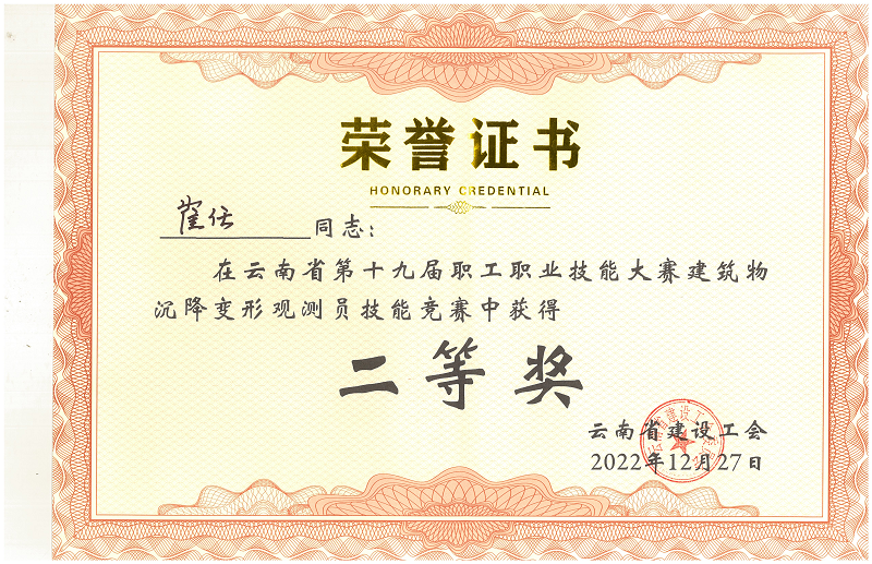12月27日,由省职业经济技术创新工程领导小组、省总工会、人社厅、住建厅主办,省建设工会承办的2026世界杯比分直播省第十九届职工职业技能大赛建筑物沉降变形观测员技能竞赛决赛在昆明市经开区紫云青鸟园区开赛,建科院结构所职工崔任在30人中脱颖而出,荣获二等奖。
