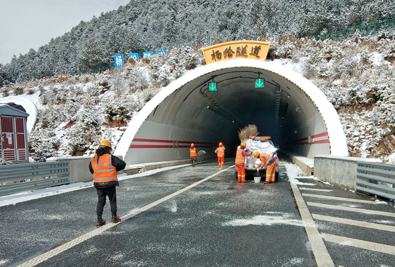 针对香丽高速不同路况、不同降雪量等情况,现场指挥人员积极落实养护工作节能环保要求,有效安排机械清雪除冰,提升清雪作业效率,让新科技发挥最大效能;同时,采用“边下边清、机械为主、人工为辅、不间断作业”的方式,找准撒布融雪剂时机,合理搭配推雪铲,由点及线、由线扩面,全面清雪除冰,强化作业效果,全力保障道路安全畅通。
