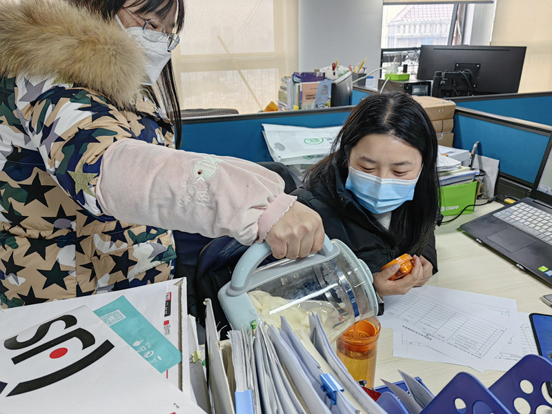 在一波疫情逐渐稳定后,一大波“小阳人”转阴后返岗期间遭受“咳嗽”侵袭,各间办公室咳嗽声此起彼伏。为此,各基层单位纷纷组织开展“冰糖炖雪梨,暖心只为你”活动,为职工熬制酥心润肺的冰糖雪梨糖水,一杯杯腾腾的冰糖雪梨,缓解症状的同时,让工作中的职工在寒冬中感受到组织的温暖。在一线,则是熬制中药汤剂,发放暖手宝,给冬日里在一线奋战的职工送上一份温暖,支起防疫的“盾牌”。