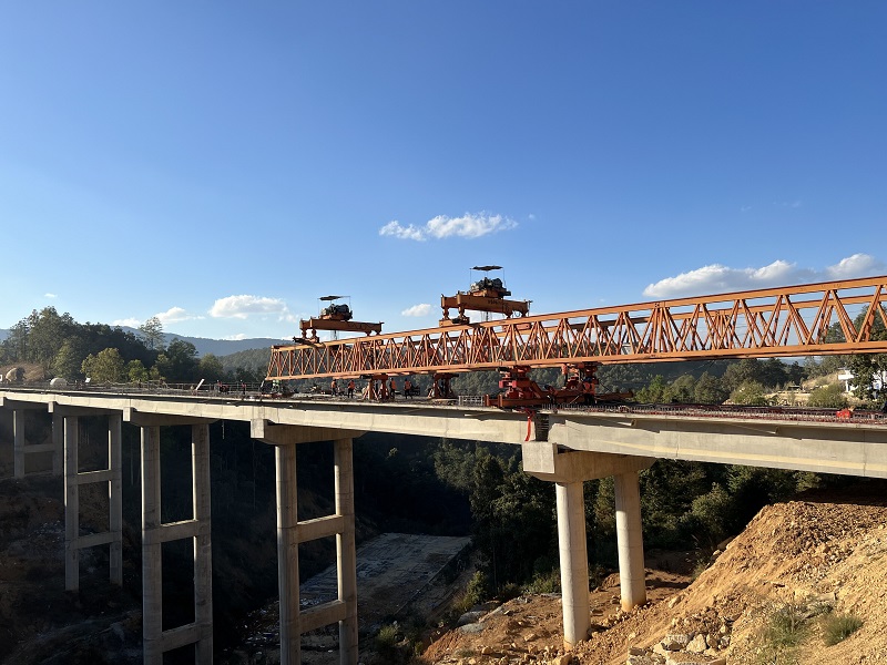 12月13日,由总承包公司施工的施勐高速一分部光头山大桥右幅6孔30米T梁吊装完成,大桥实现双幅贯通。