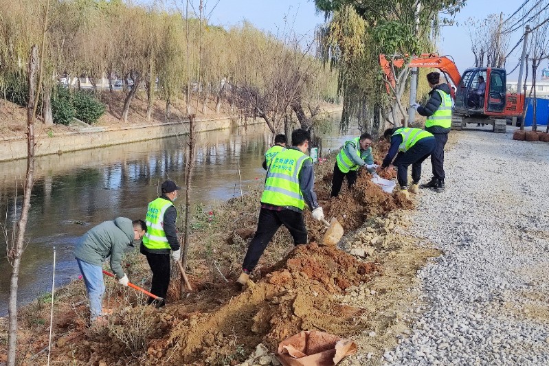活动过程中,全体人员带着锄头、铁铲、水桶等劳动工具到指定地点进行植树,相互协作,分工明确,并对周边杂草、垃圾、渣土乱石等进行了清理。经过大家的辛勤劳作,共完成河岸1公里多的树苗种植任务。