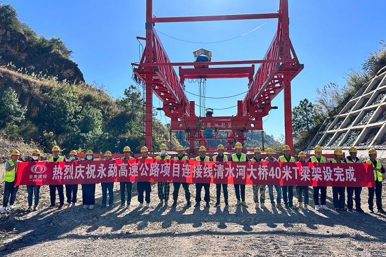 12月9日,永勐高速公路永德连接线段土建一分部清水河大桥T梁架设完成。